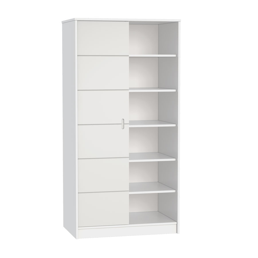 Součástí šatní skříně Faktum ALDA Ice Glossy je šest vnitřních polic a dvě šatní tyče. Je možné dokoupit tři vnitřní police. Posuvné dveře jsou vybaveny kvalitním kováním značky BLUM, mají vyfrézované úchyty.