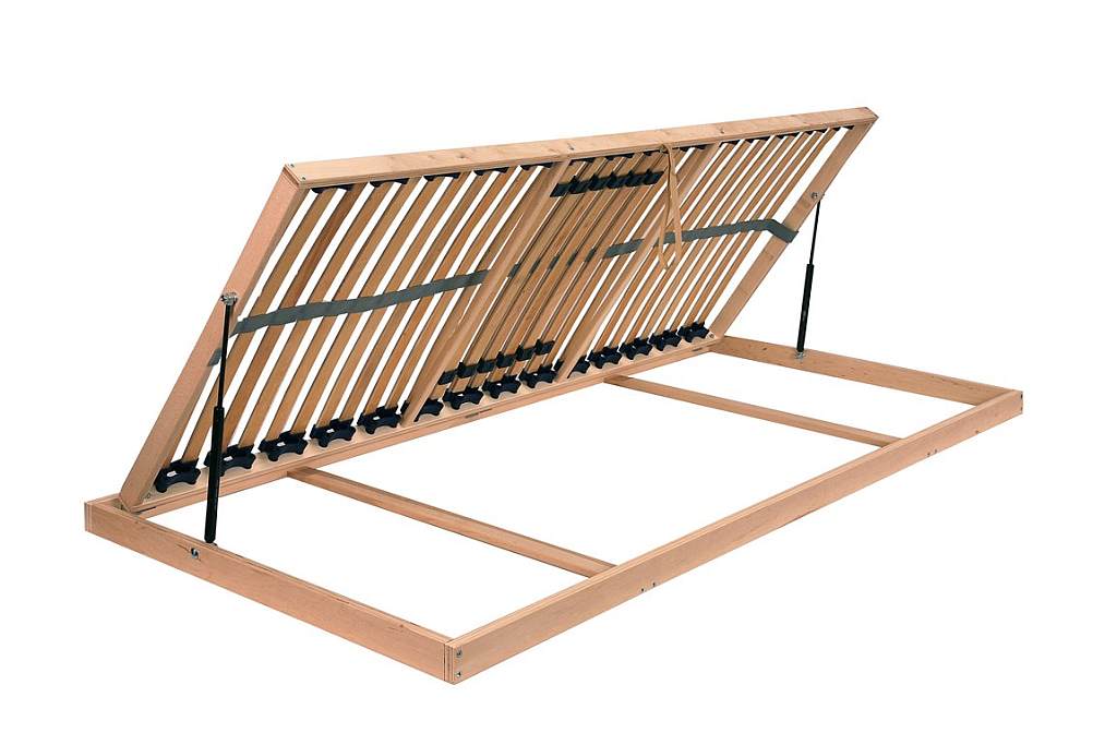 - Lamelový rošt s výklopným systémem pro přístup do úložného prostoru z boku pomocí vzduchových pístů