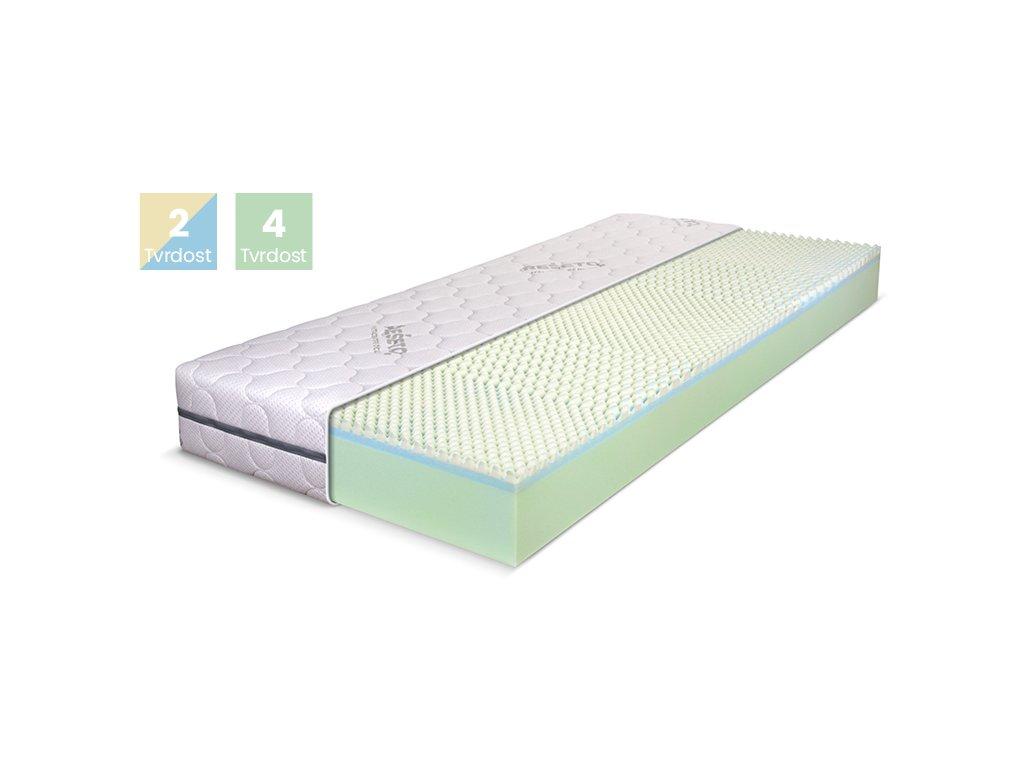 Dvoutuhostní matrace Air Visco, kde jádro ze studené HR pěny je upravenou moderní technologií ŘEŠETO a roznášecí nopované desky VISCO/Hypersoft studené pěny s otevřenou strukturou a jedinečnou měkkostí zajišťují maximální relaxaci pro Vaše tělo.