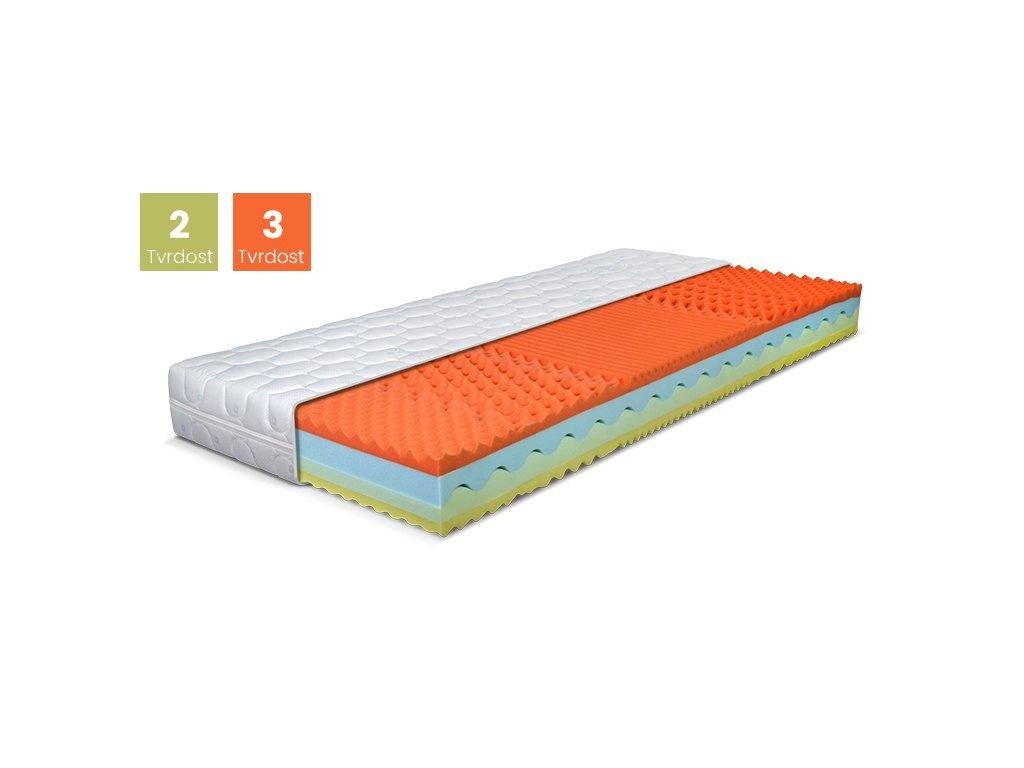 Výrazné profilování povrchu zajišťuje správný a současně velice kvalitní spánkový komfort, díky kterému je zajištěno odlehčení exponovaných míst na těle.