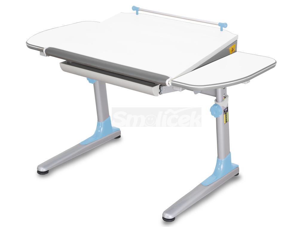 součástí stolu jsou i praktické podpora zápěstí s pravítkem, výsuvný organizér pro školní pomůcky a držáky školní prašny po obou stranách