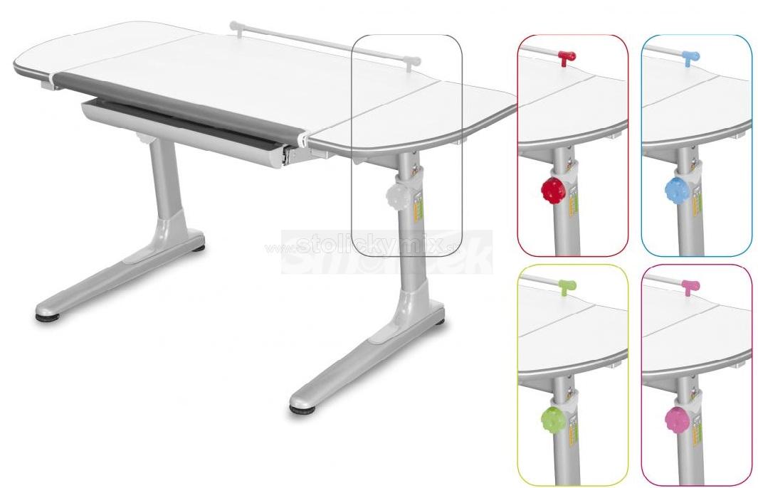 Rostoucí psací stůl Mayer PROFI3 5v1 je novinkou firmy Mayer. Stůl má stříbrný rám a 5 různých barev plastových doplňků v balení! Je vhodný pro začínající i pokročilé školáky. Design rostoucího psacího stolu Mayer PROFI3 je vhodný pro prvňáčky i pro maturanty. Jednoduché ovládání a bohaté standardní vybavení podpoří úspěšný život školáka. Vodorovné boční díly nabízejí více odkládacích ploch. Díky robustnímu provedení bude dětský rostoucí psací stůl Profi3 dlouholetým průvodcem školáka na cestě ke vzdělání. Bezpečný pohyb v okolí stolu zajišťují kvalitní oblé hrany a zakulacené rohy psací desky. V základní výbavě je příjemná podpora zápěstí s pravítkem, velký výsuvný organizér a držáky školní brašny po obou stranách. K rostoucímu psacímu stolu Mayer PROFI3 lze zakoupit příslušenství a to menší čtvercový nástavec či velkou poličku Profi s držákem knih.