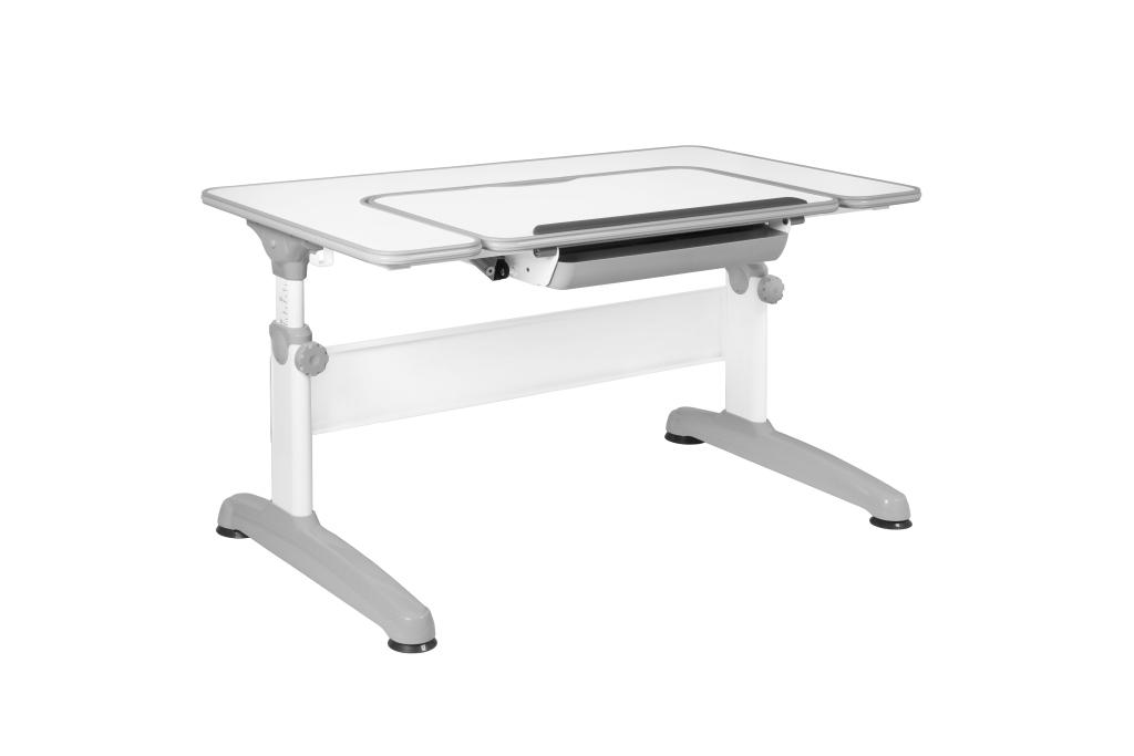 Bezpečný pohyb v okolí stolu zajišťují zakulacené rohy psacích desek. V základní výbavě je praktická opora zápěstí i výsuvný organizér pro školní pomůcky.