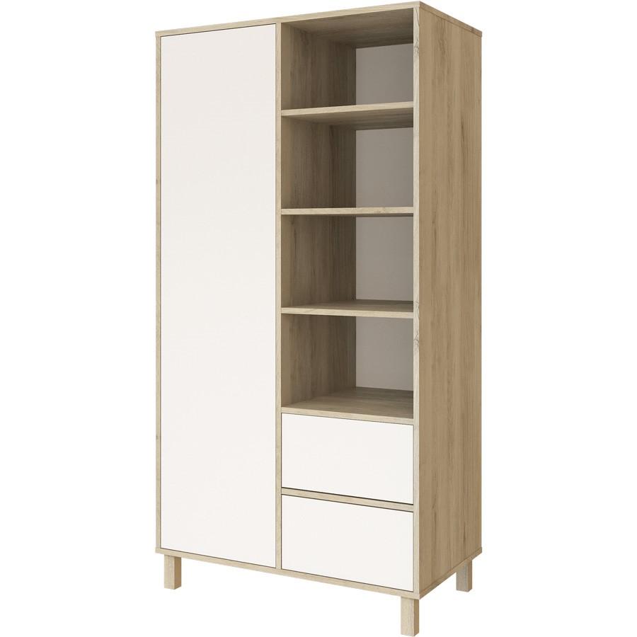 Dvoudílná šatní skříň Faktum Wing Grey Oak & White je vybavena 3 policemi a 2 zásuvkami v pravé části a 2 šatními tyčemi a 1 policí na levé straně. Do levé části je možné dokoupit 3 police (podrobněji viz schéma vnitřního uspořádání skříně).