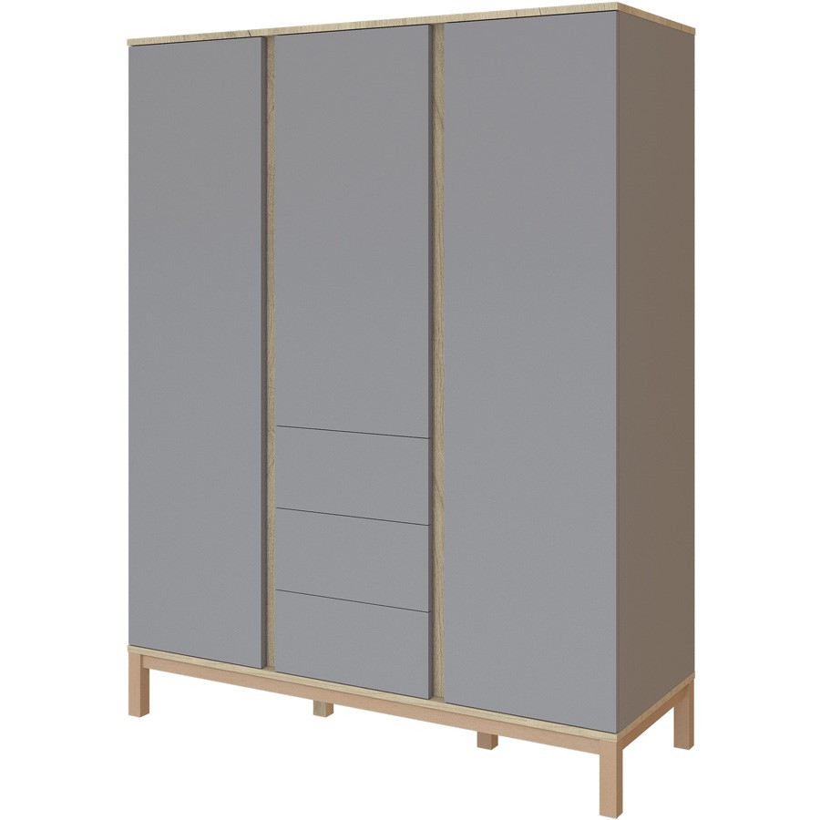 Třídílná šatní skříň Faktum Loop Grey & Oak